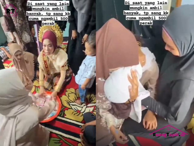 Sang kakak hanya mengambil satu keping uang senilai Rp500. Keputusan tersebut langsung membuat suasana berubah menjadi haru. Tindakan itu dianggap sebagai simbol keikhlasan bahwa ia merestui pernikahan sang adik tanpa mengharapkan imbalan materi.